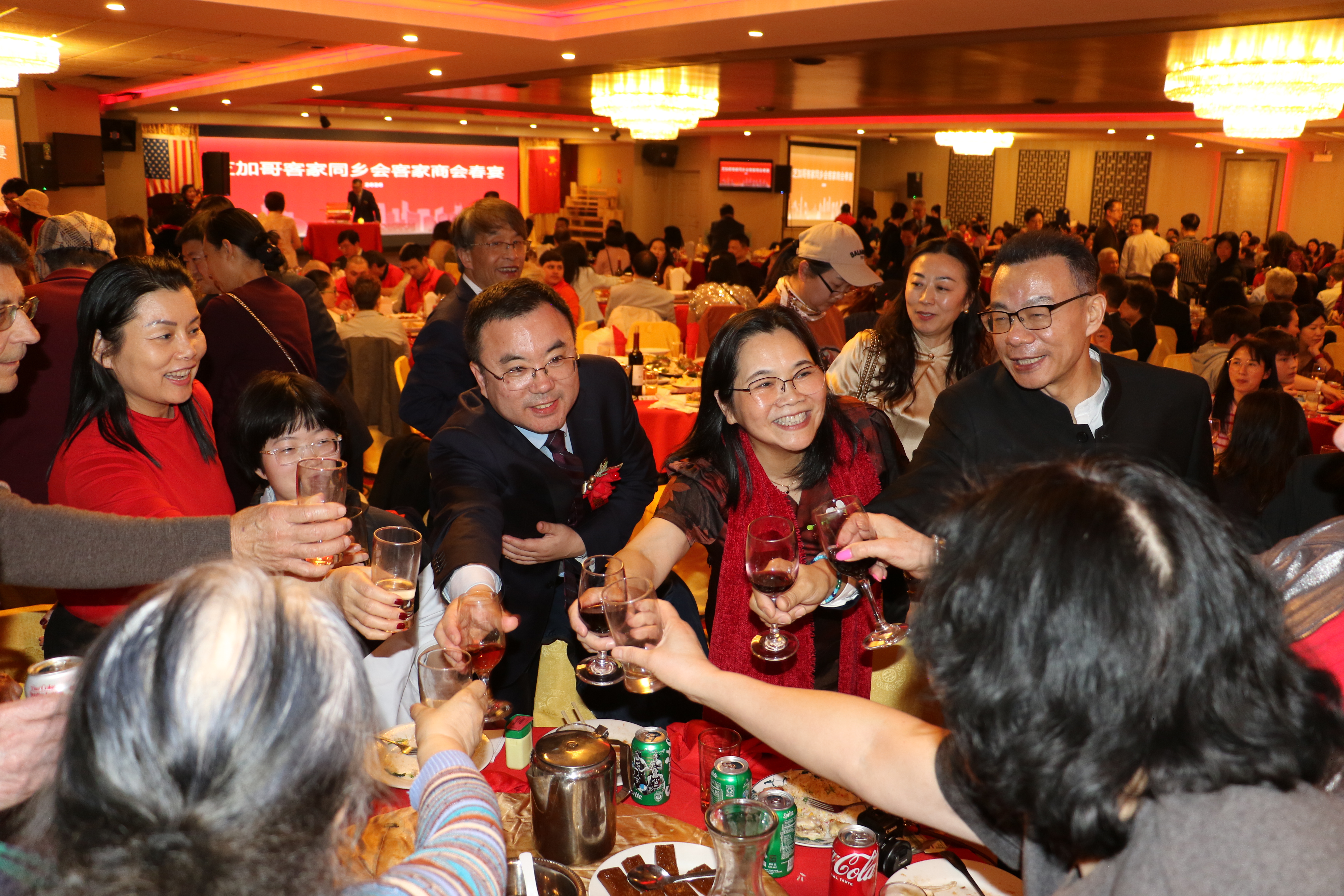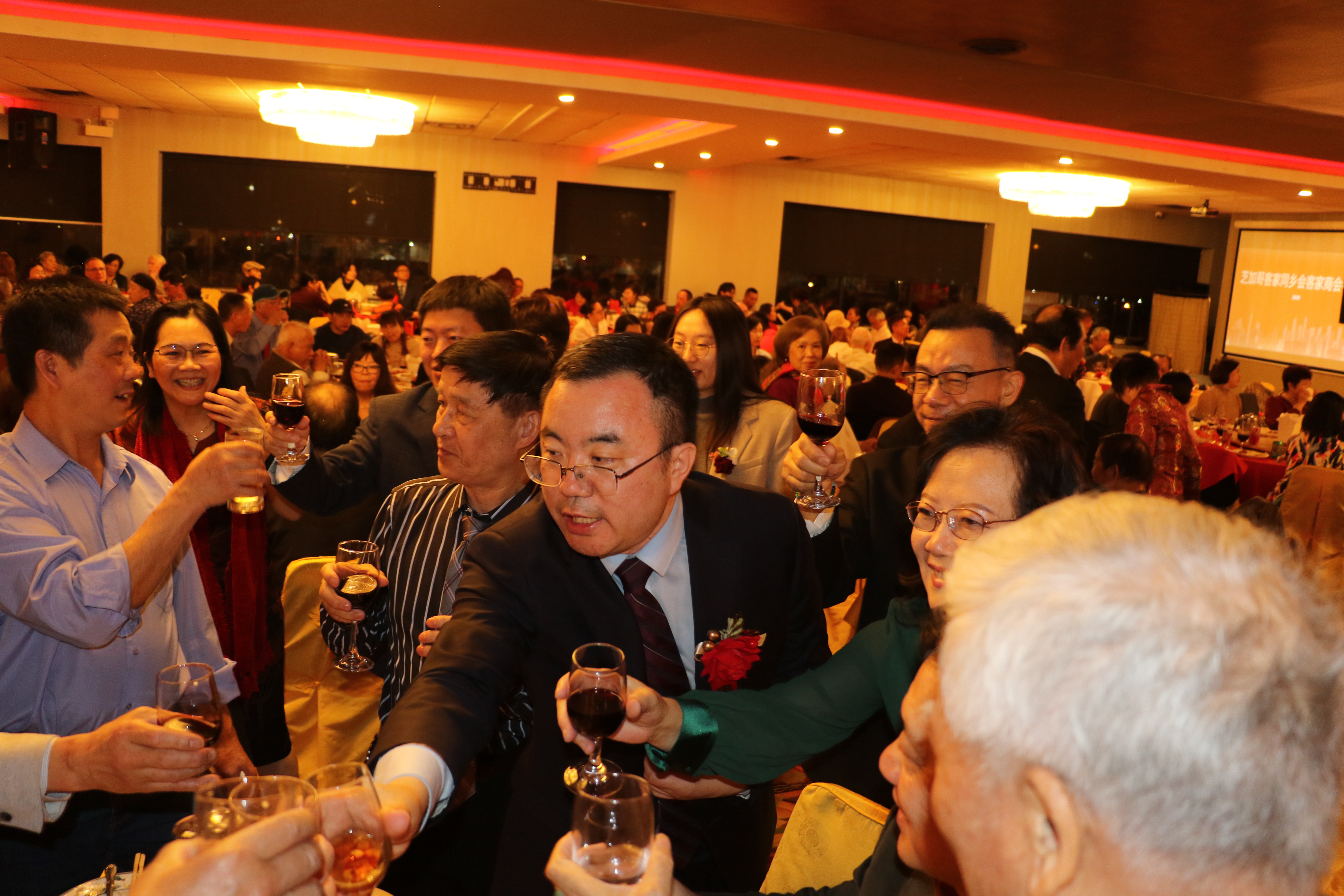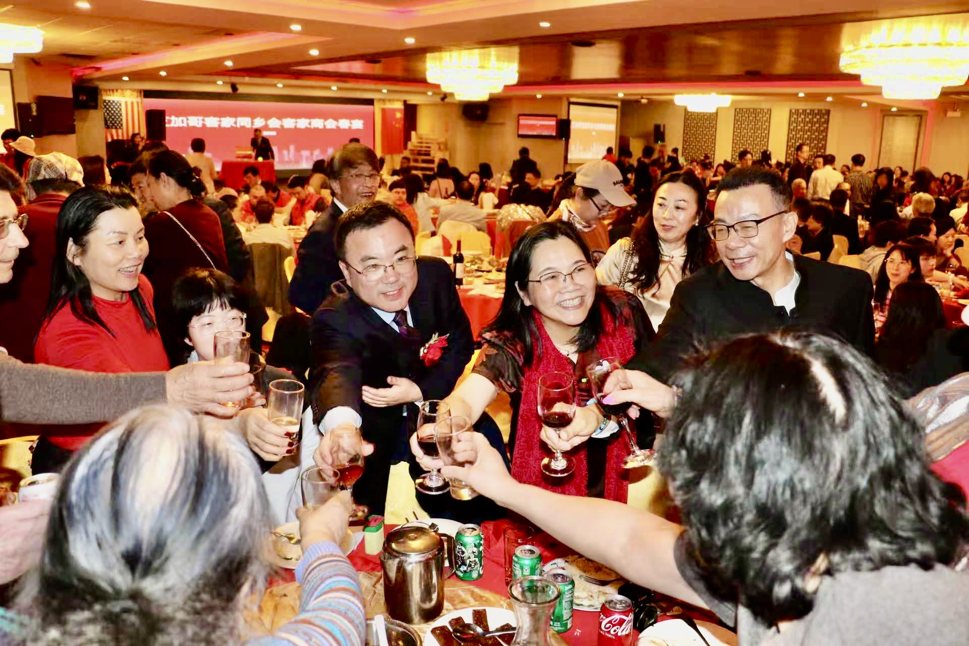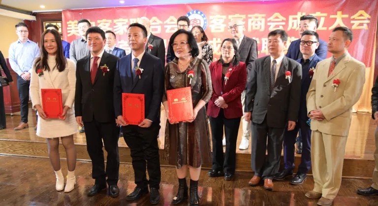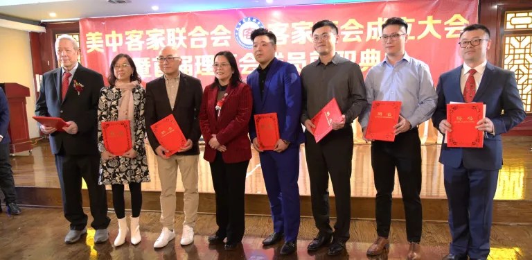美中客家聯合會、客家商會2日在華埠富麗華餐廳舉行成立大會暨首屆理事會成員就職典禮,客家兩會的會長陳青表示,創建客家聯合會是為了延續客家文化之根,在守護珍貴的客家文化遺產同時,也要讓它在這片多元文化的沃土上生根發芽、綻放光彩,此外,商會則為客家企業家和創業者搭建交流與合作的平台。 包括伊利諾州州眾議員馬靜儀、芝加哥11區區長李惠華、中國中國駐芝加哥總領館僑務組長張軍鵬等350多位嘉賓參加了當天盛會。伊州聯邦參議員達克沃斯(Tammy Duckworth)、伊州州務卿詹雅斯、庫克郡郡長普瑞科溫可等,也紛紛發出賀信、影片祝福會務蓬勃發展。 該活動除了獲得大芝加哥客家鄉親大力支持外,還得到廣東威林科技、廣東綠蒂家具居用品、深圳市奧佳德汽車電子、廣東清匠集團等客家鄉親企業的支持。 張軍鵬致詞時,肯定在美客家鄉親秉承客家精神,自立自強、團結奮進,為促進當地經濟社會發展、增進中美民間友誼作出了重要貢獻。 客家兩會名譽主席葉景濃說,客家人足跡遍布世界,客家聯合會和商會的成立,為客家人搭建了團結互助、交流合作的平台。另一位名譽主席劉紅致詞時,介紹了客家人千年前南遷時經歷的困難與挑戰,她也提到,客家人參與了中國許多重大歷史事件,更以其獨特語言、飲食、音樂、建築、弗市等,豐富了中國的多元文化,此外,客家人重視家庭、社區,倡導感恩圖報。 當天大會由余菲、包東宇主持,新任會長、名譽主席、理事、顧問,在牧師Tony帶領下宣誓就職。 晚會也推出了精彩紛呈的文藝節目,包括吳小萍演唱「人間第一情」、 芝加哥CJ舞蹈隊「蘋果香」、壯族女高音歌唱家陳米範演唱、男高音歌唱家逯克德獻唱、加哥人民藝術團舞蹈表演藏族舞三朵花、中國功夫學院武術表演等。
