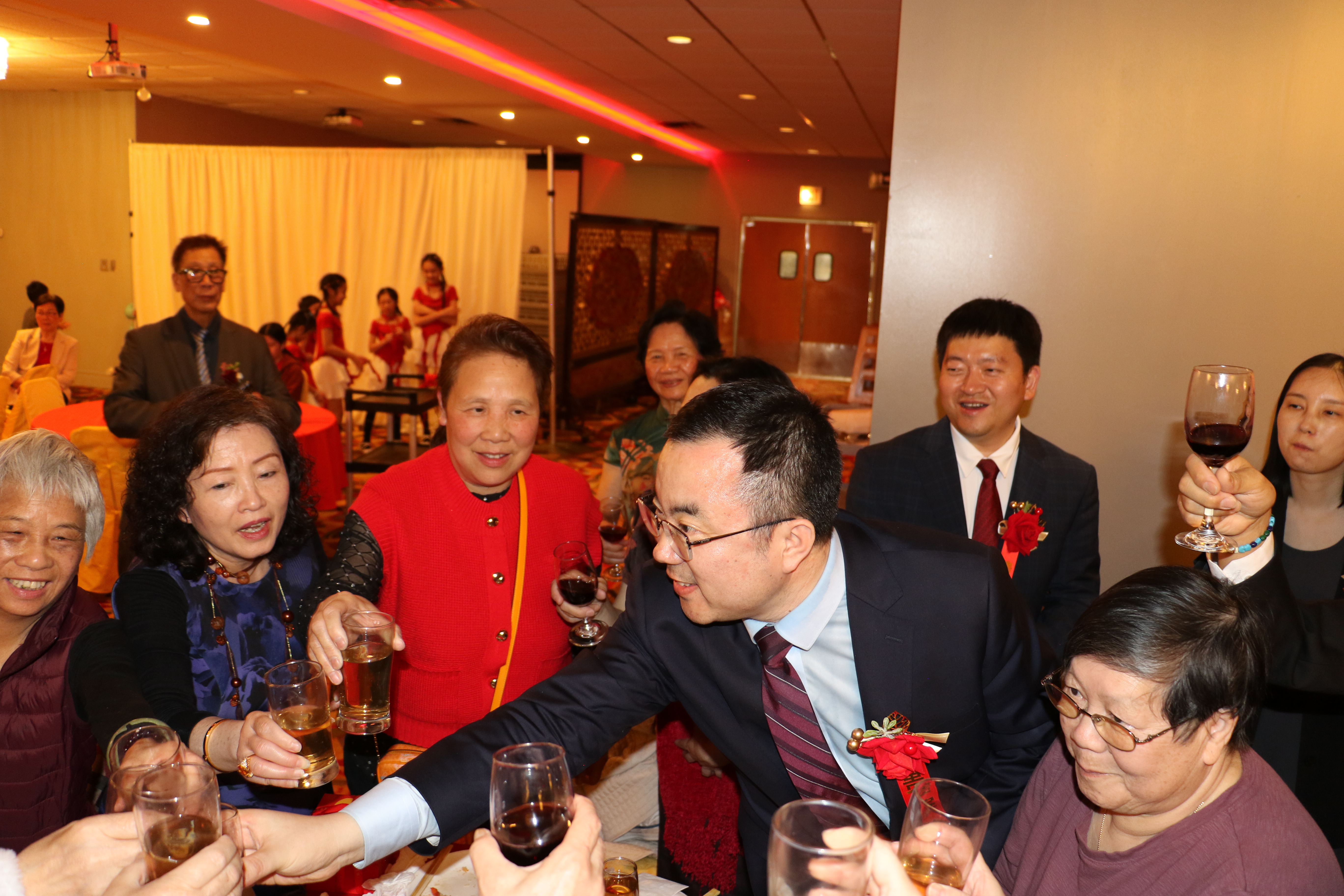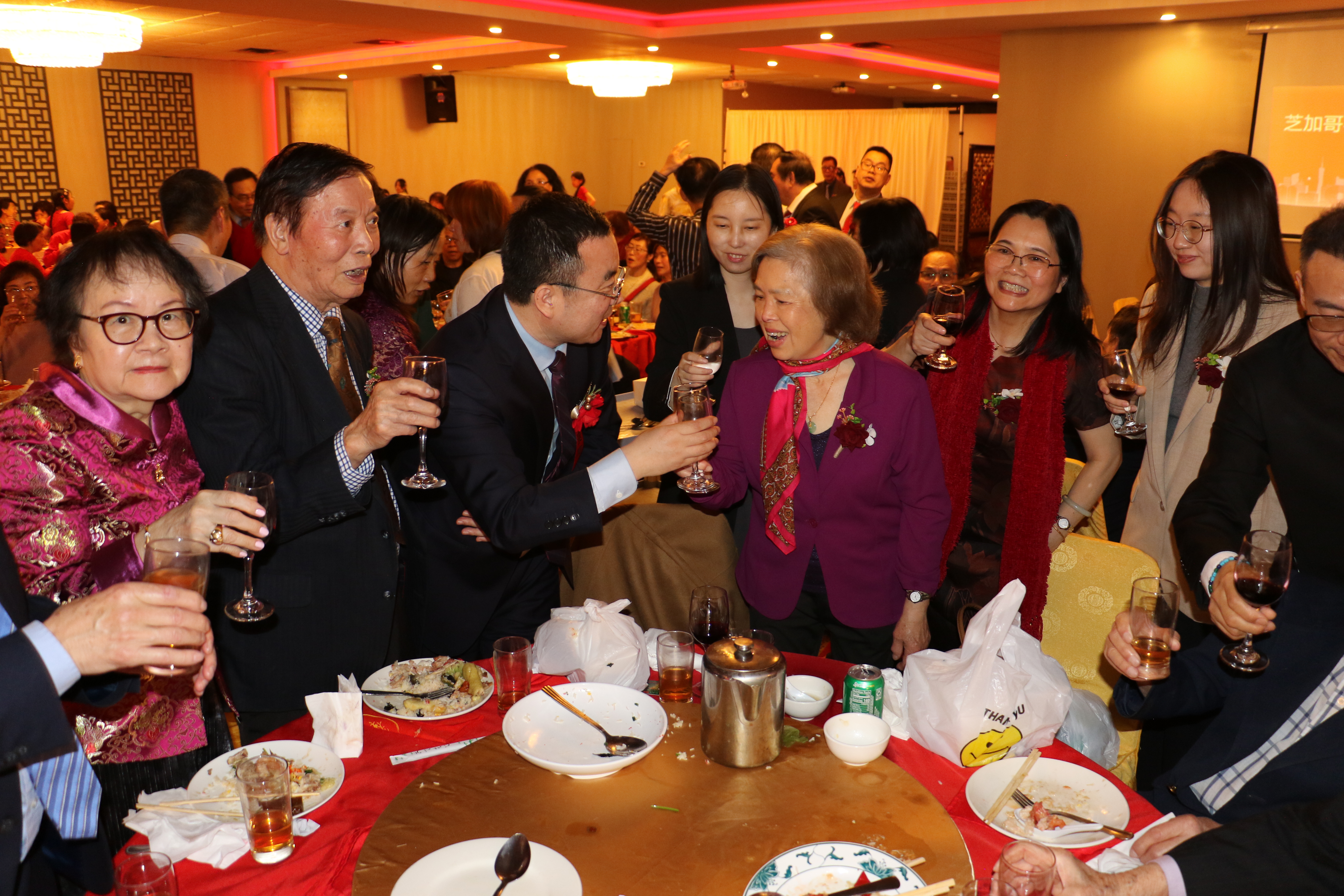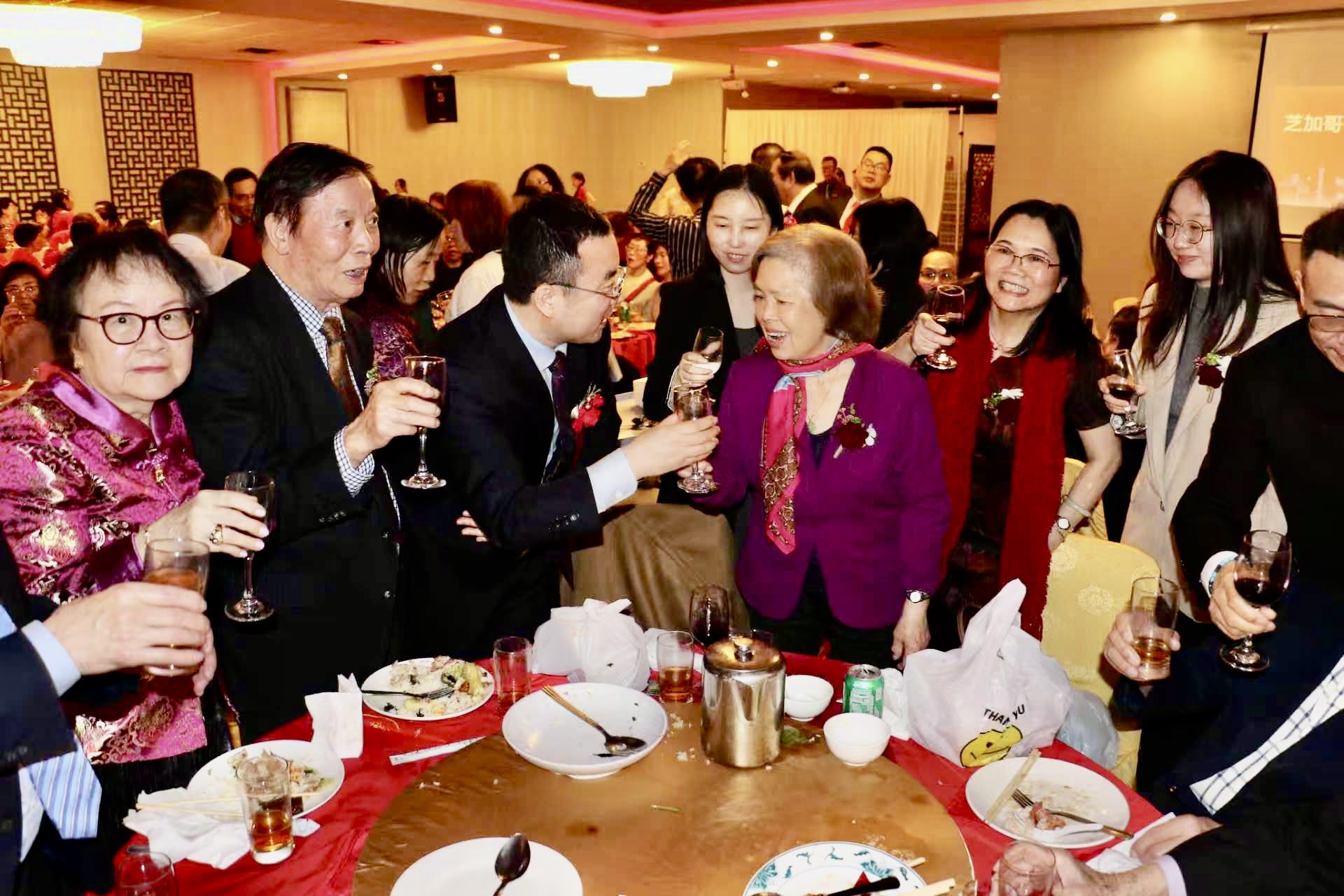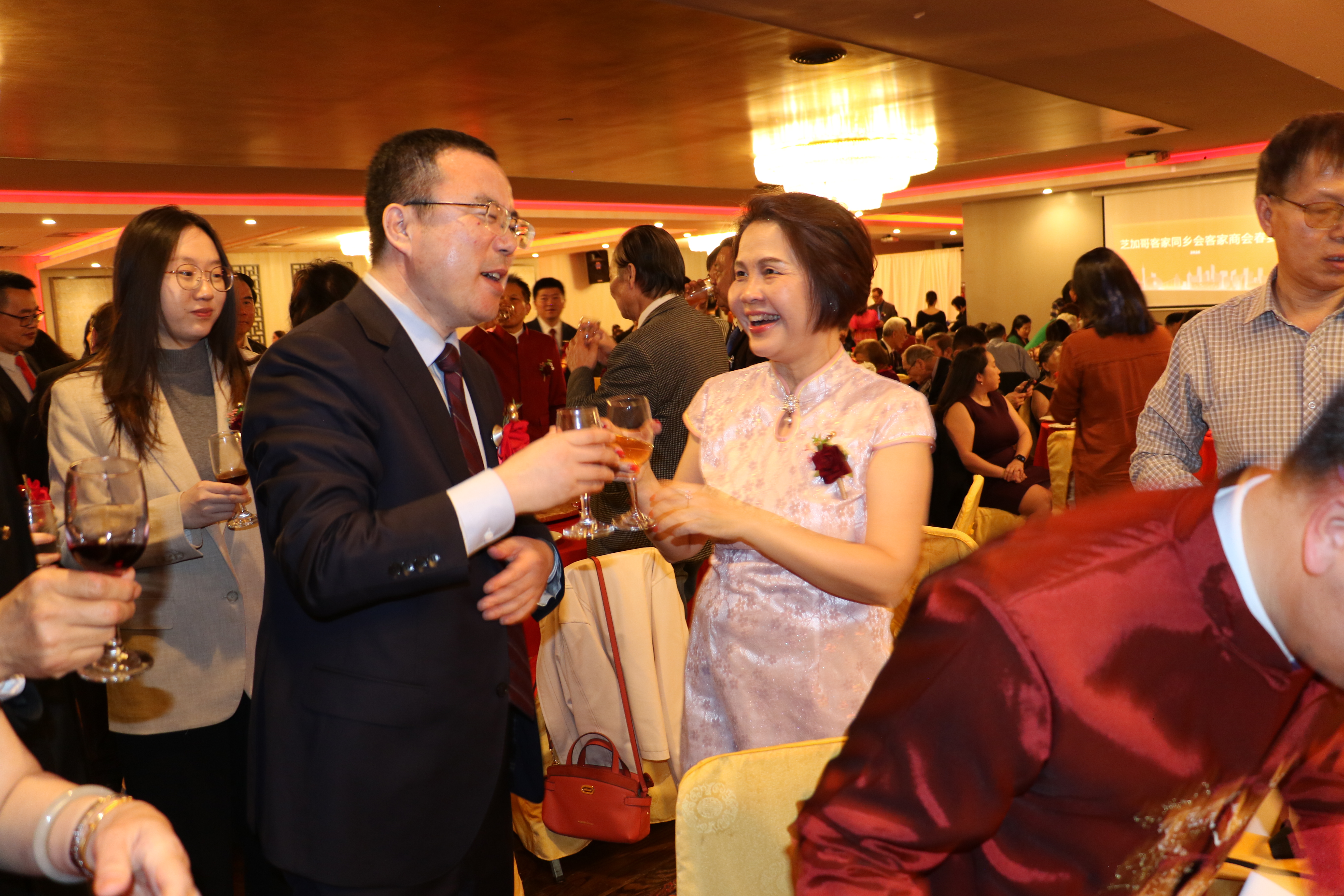 美中客家聯合會、客家商會2日在華埠富麗華餐廳舉行成立大會暨首屆理事會成員就職典禮,客家兩會的會長陳青表示,創建客家聯合會是為了延續客家文化之根,在守護珍貴的客家文化遺產同時,也要讓它在這片多元文化的沃土上生根發芽、綻放光彩,此外,商會則為客家企業家和創業者搭建交流與合作的平台。 包括伊利諾州州眾議員馬靜儀、芝加哥11區區長李惠華、中國中國駐芝加哥總領館僑務組長張軍鵬等350多位嘉賓參加了當天盛會。伊州聯邦參議員達克沃斯(Tammy Duckworth)、伊州州務卿詹雅斯、庫克郡郡長普瑞科溫可等,也紛紛發出賀信、影片祝福會務蓬勃發展。 該活動除了獲得大芝加哥客家鄉親大力支持外,還得到廣東威林科技、廣東綠蒂家具居用品、深圳市奧佳德汽車電子、廣東清匠集團等客家鄉親企業的支持。 張軍鵬致詞時,肯定在美客家鄉親秉承客家精神,自立自強、團結奮進,為促進當地經濟社會發展、增進中美民間友誼作出了重要貢獻。 客家兩會名譽主席葉景濃說,客家人足跡遍布世界,客家聯合會和商會的成立,為客家人搭建了團結互助、交流合作的平台。另一位名譽主席劉紅致詞時,介紹了客家人千年前南遷時經歷的困難與挑戰,她也提到,客家人參與了中國許多重大歷史事件,更以其獨特語言、飲食、音樂、建築、弗市等,豐富了中國的多元文化,此外,客家人重視家庭、社區,倡導感恩圖報。 當天大會由余菲、包東宇主持,新任會長、名譽主席、理事、顧問,在牧師Tony帶領下宣誓就職。 晚會也推出了精彩紛呈的文藝節目,包括吳小萍演唱「人間第一情」、 芝加哥CJ舞蹈隊「蘋果香」、壯族女高音歌唱家陳米範演唱、男高音歌唱家逯克德獻唱、加哥人民藝術團舞蹈表演藏族舞三朵花、中國功夫學院武術表演等。